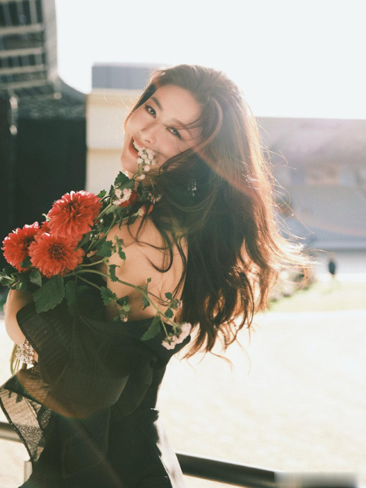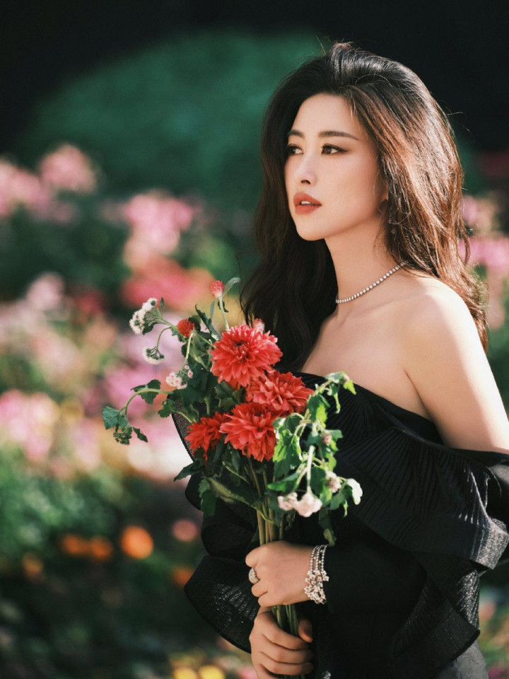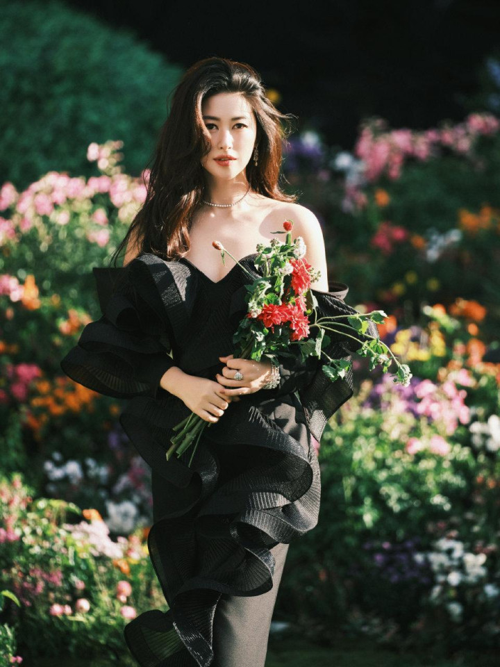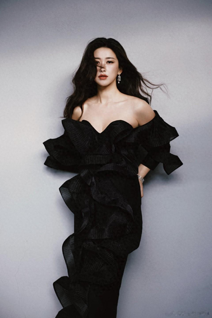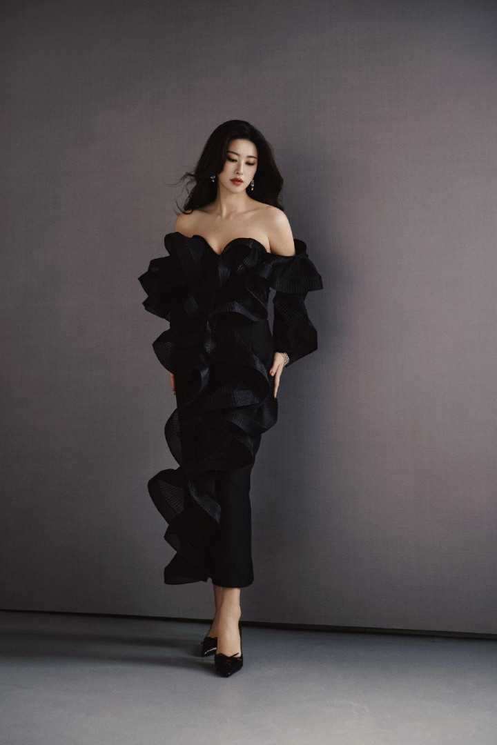 > 朱珠阿姨黑色露背抹胸裙写真, 太迷人了