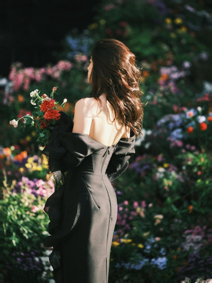 朱珠阿姨黑色露背抹胸裙写真, 太迷人了